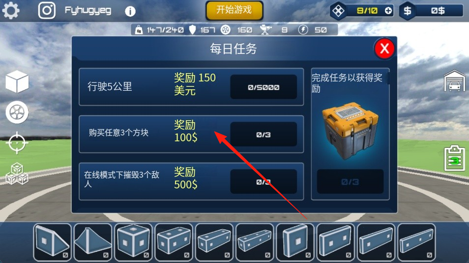 2、依據任務指引,積累資源購買方塊,用于搭建和改裝屬于自己的載具。