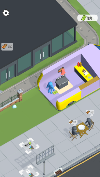 3、從經營餐車、服務顧客(送餐、用餐互動)等元素判斷,以移動餐車經營為主題,通過服務顧客、升級餐車盈利。