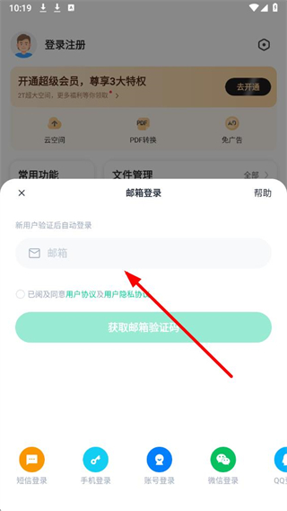 3、在登錄彈窗的底部選項中,點擊郵箱登錄選項,切換至郵箱登錄界面。