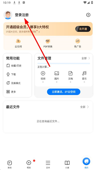 2、在個人頁面上方,找到登錄注冊選項并點擊,觸發登錄方式選擇彈窗。