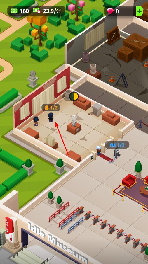 3、游客參觀消費可累積收益,用收益升級展館設施,解鎖“文物修復”功能還原破損藏品提升價值。
