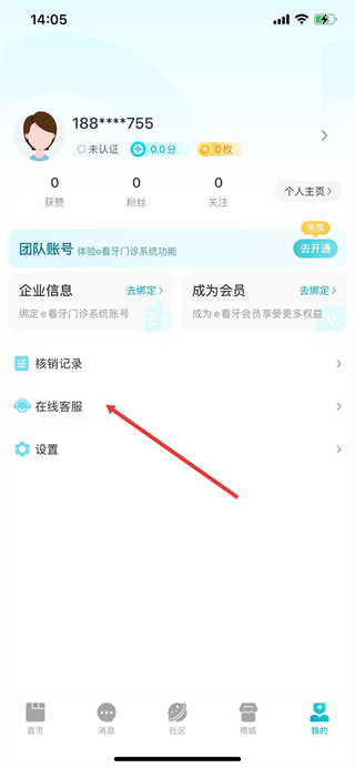 1、打開e看牙,點擊底部導航欄的我的選項。
