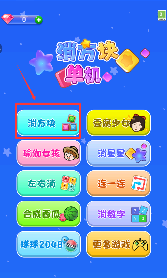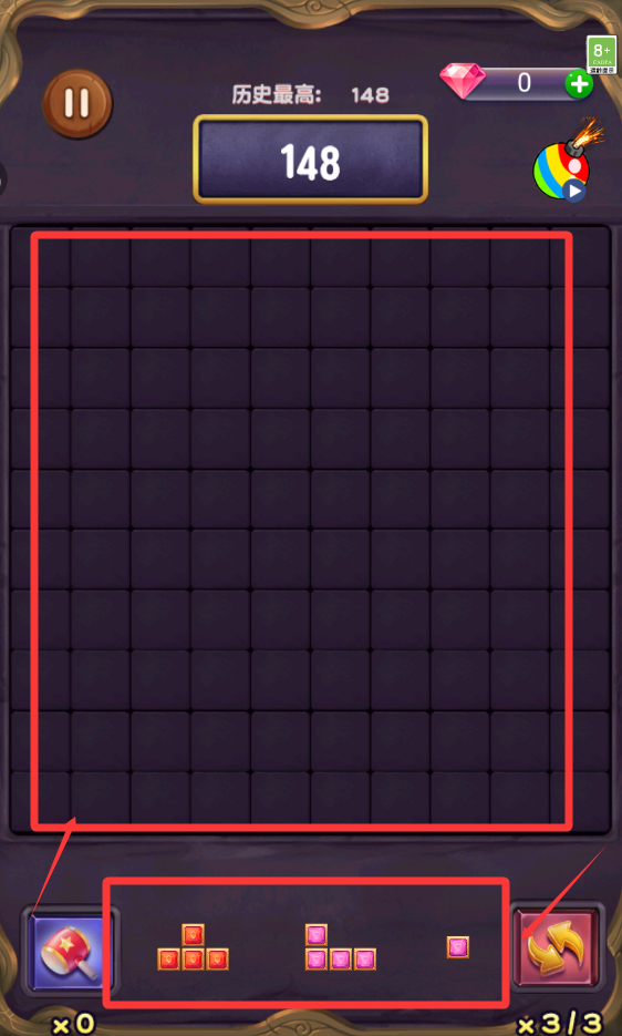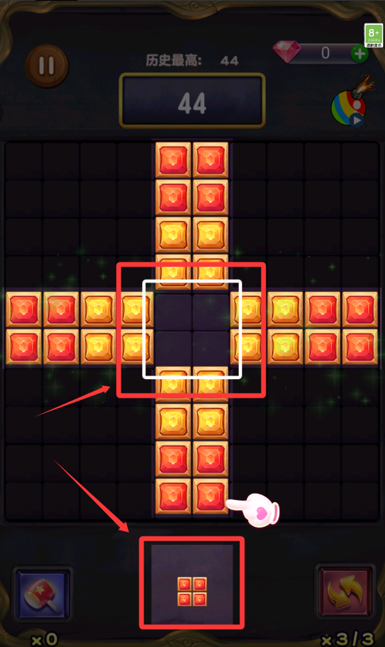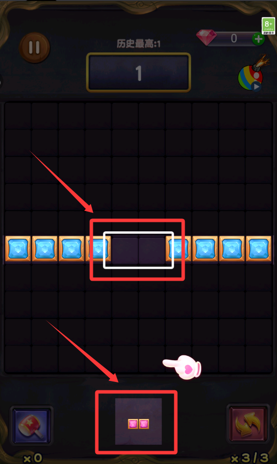 4、把下面的方塊移動到空位置。只要排成一列或者一豎就能消除。