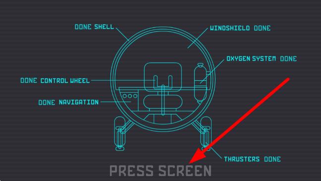 2、進入飛船藍圖界面,點擊PRESS SCREEN箭頭的指向,確認飛船建造完成,進入實際的場景。