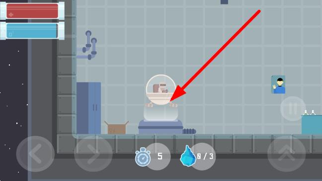 3、操控箭頭指向的太空艙,在空間站場景移動,收集藍色水滴,推進劇情。