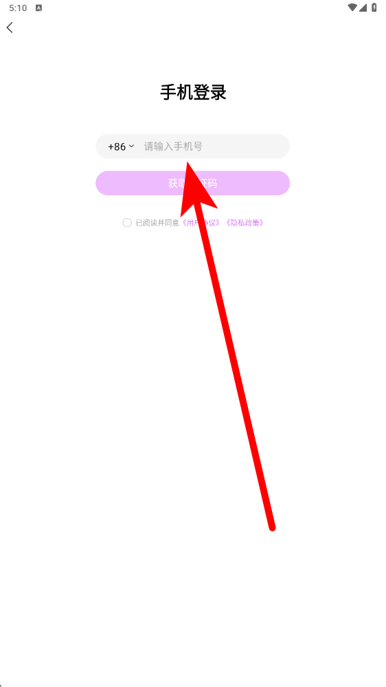 1、進入手機登錄界面,在該界面輸入手機號,完成登錄后。