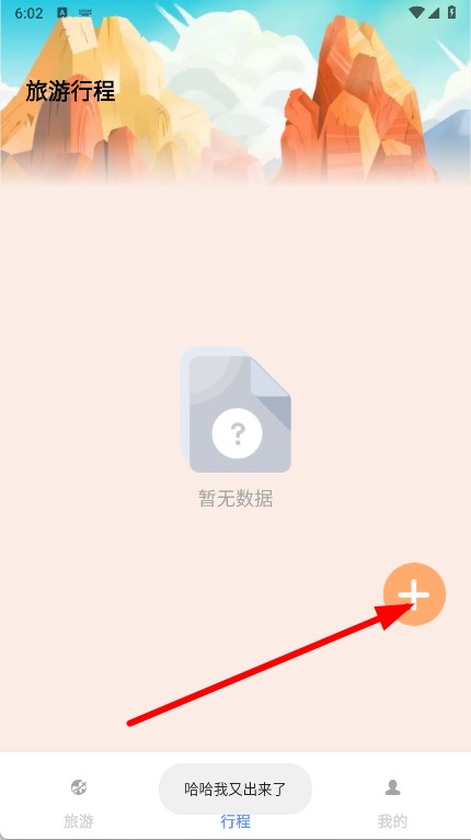 2、在旅游行程頁面,點擊右下角的橙色+按鈕,彈出創建行程窗口。