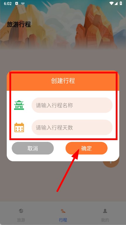 3、輸入行程名稱和行程天數,輸入完成后點擊確定按鈕,成功創建旅游行程。