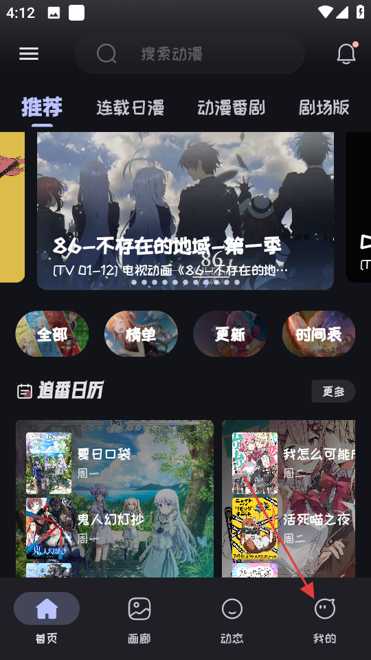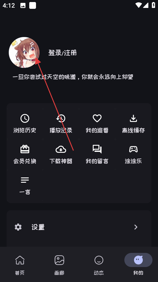 1、在動漫類應用首頁,點擊底部我的,進入個人頁面。