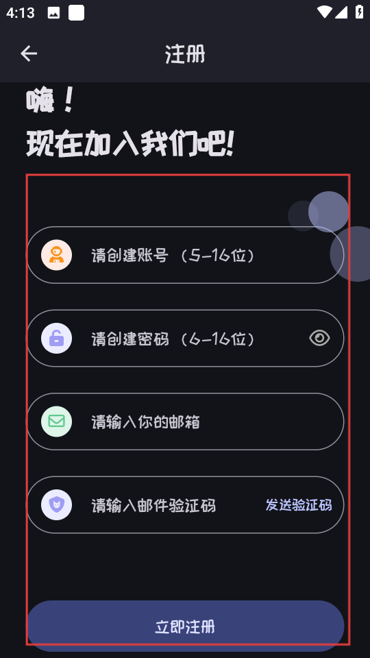 4、在注冊頁面,依次填寫信息,點擊立即注冊完成注冊。