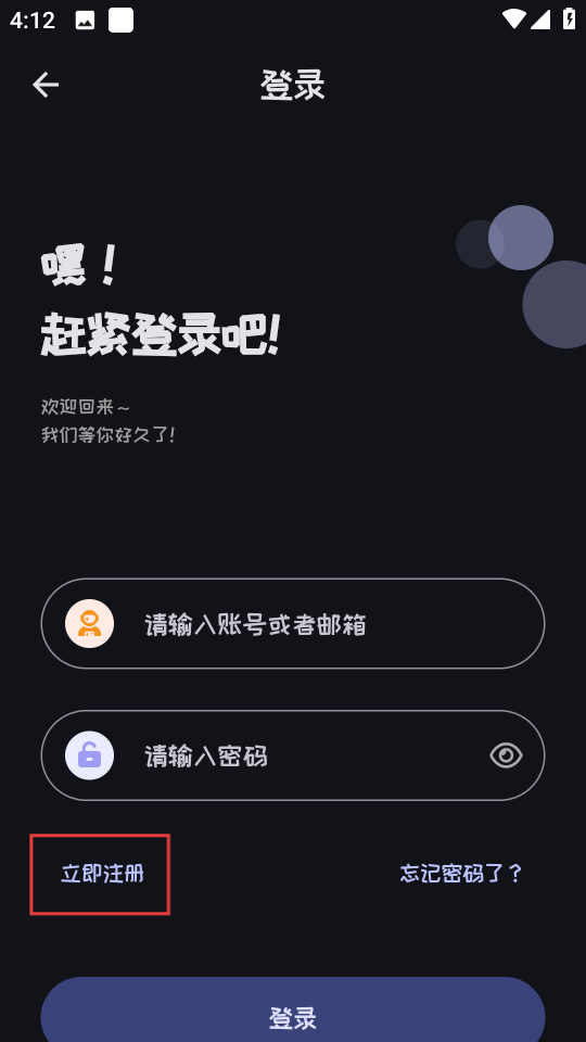 3、在登錄頁面,點擊立即注冊,進入注冊頁面。
