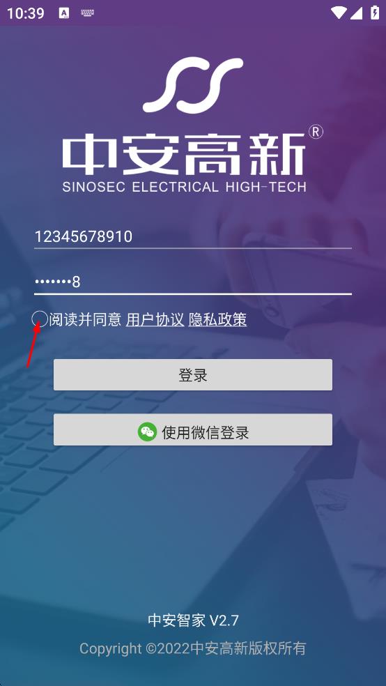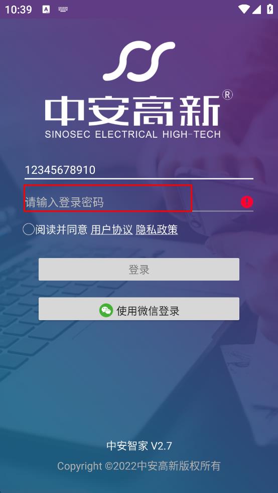 1、打開中安智家軟件,在登錄頁面輸入手機號碼。