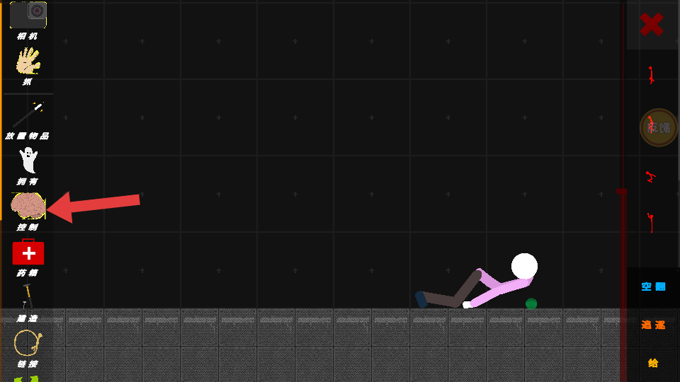 1、在游戲界面中,點擊箭頭指向的控制選項,可對場景內的角色或物體進行操控,開啟互動玩法,為后續操作奠定基礎。