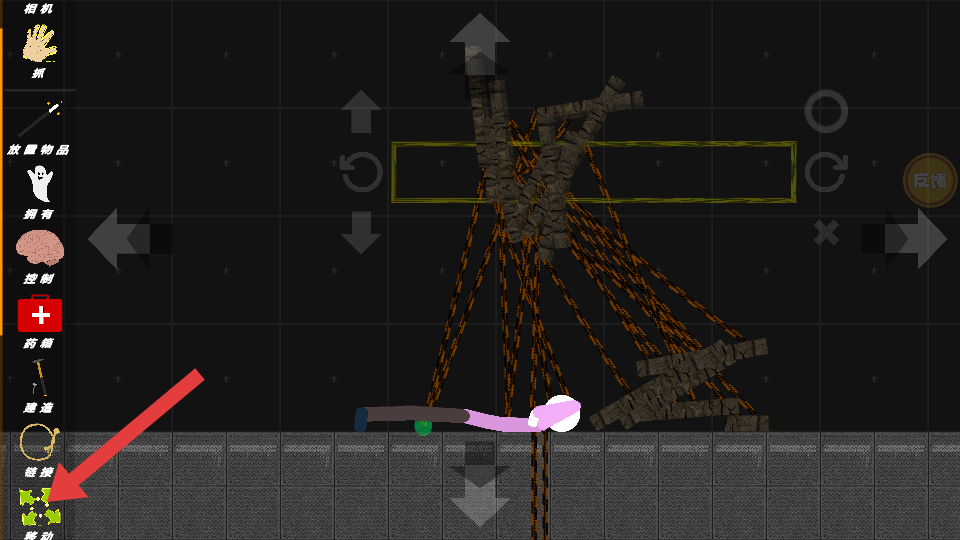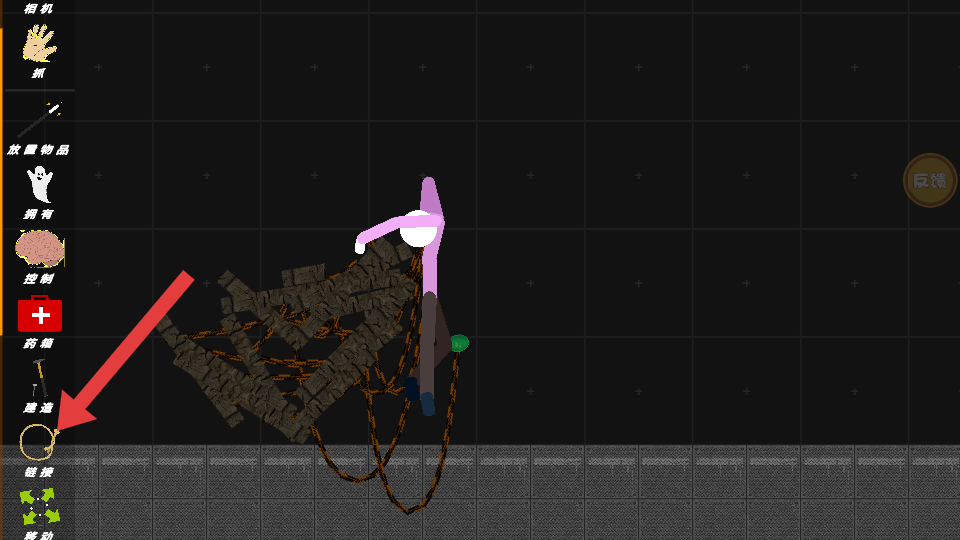 3、選擇箭頭指向的連接功能,能將不同的物體如石塊、繩索等進行連接,打造更復雜的裝置或結構,拓展游戲創作的可能性。