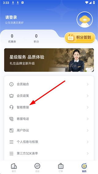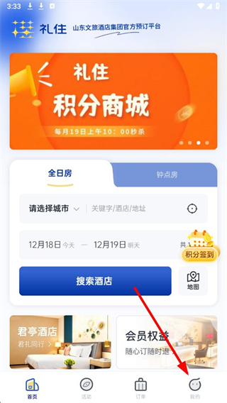 1、打開銀座酒店禮住APP,點擊底部導航欄的我的選項,進入個人頁面。