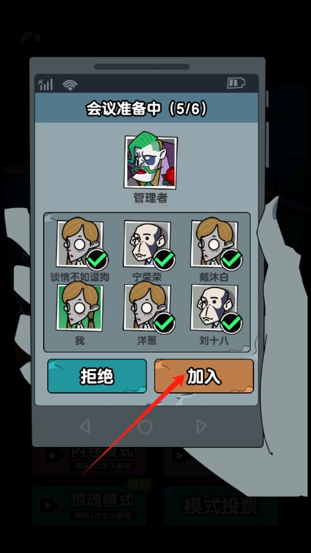1、當收到會議邀請時,可點擊加入按鈕參與游戲對局,與其他玩家及管理者角色開啟對抗,這是進入游戲環節的關鍵操作。