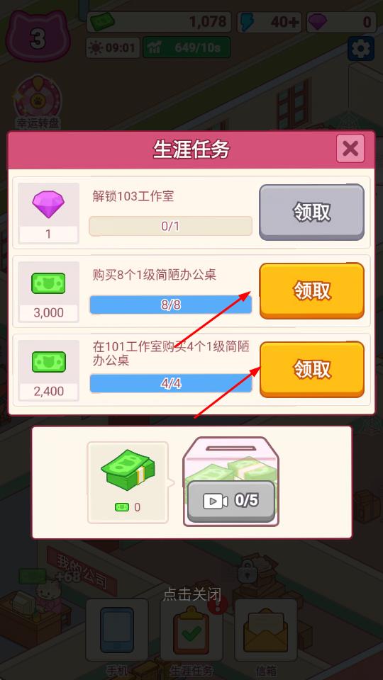 3、管理運營提升效益:日常推進項目進度,處理員工事務,優化辦公流程與資源配置,通過完成階段性目標獲取獎勵,持續升級公司設施與業務范圍,逐步壯大創業版圖。