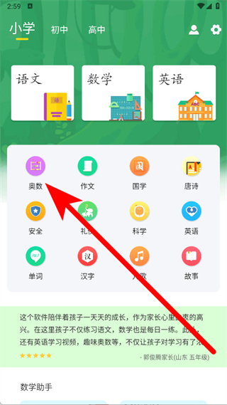 1、打開樂學課堂,在主界面中找到奧數圖標并點擊,進入奧數學習頁面。