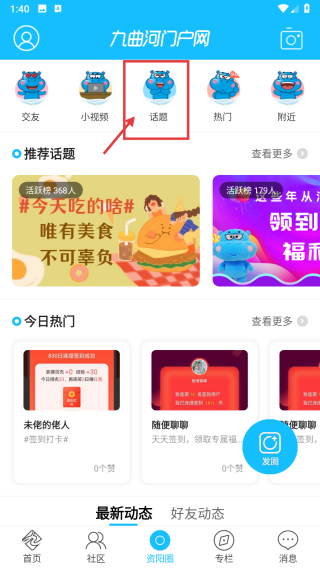 2、在資陽圈頁面,點擊話題分類,進入話題專區。