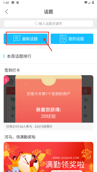 3、在話題專區,點擊最新話題選項,查看最新話題列表。