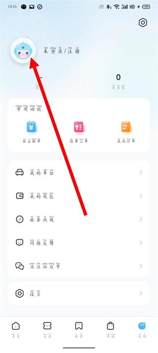 2、在個人頁面,點擊未登錄注冊,進入注冊登錄頁面。