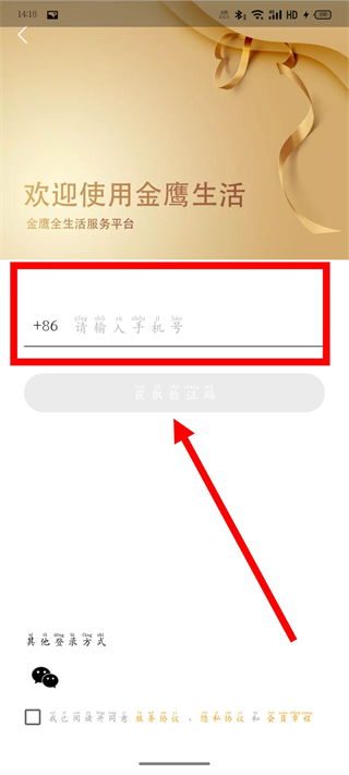3、在登錄頁面,輸入手機號后,點擊獲取驗證碼。