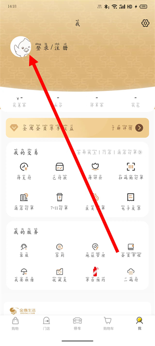 2、在我的頁面,點擊登錄注冊區域,進入登錄頁面。