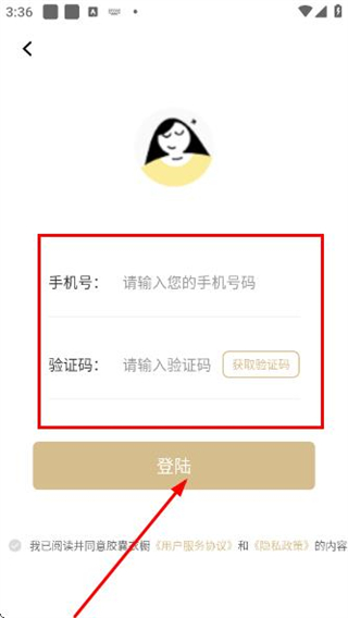 4、在該頁面填寫手機號和驗證碼,勾選協議后點擊登陸完成登錄操作。