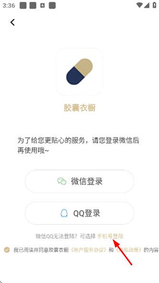 3、在登錄選擇頁面點擊手機號登錄,進入手機號登錄頁面。