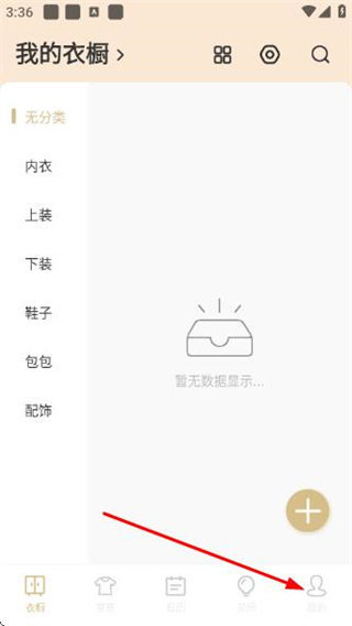 1、在我的衣櫥頁面點擊底部我的,進入我的頁面。