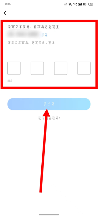 4、在短信驗證頁面,填寫收到的驗證碼,點擊下一步。
