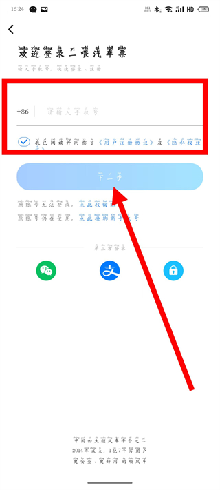 3、在注冊頁面,輸入手機號,勾選后,點擊下一步。
