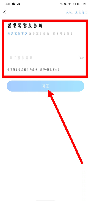 5、在設置密碼頁面,輸入6-16位登錄密碼,點擊確定,完成注冊登錄。