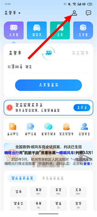 1、打開汽車票,點擊右上角的我的圖標,進入我的頁面。