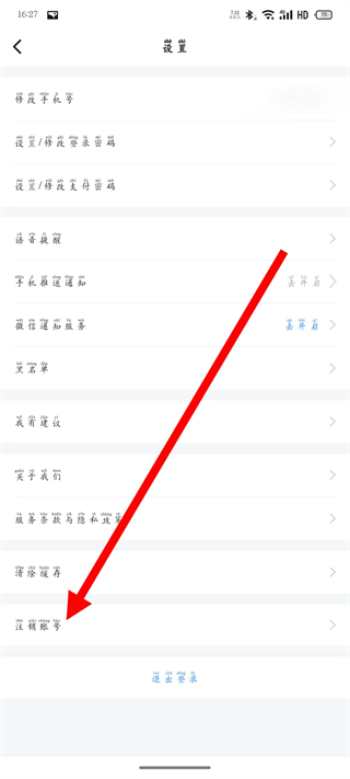3、在設置頁面,點擊注銷賬號選項,進入注銷頁面。