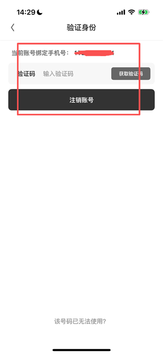 5、在驗證身份頁面輸入驗證碼后,點擊注銷賬號完成操作。