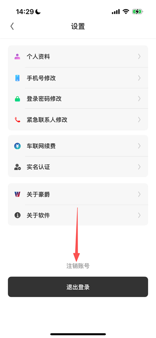3、在設置頁面點擊注銷賬號選項,進入賬號注銷協議頁面。