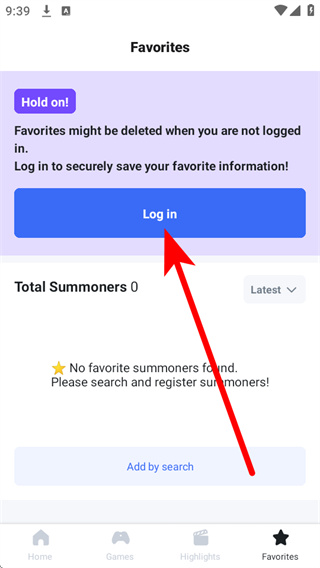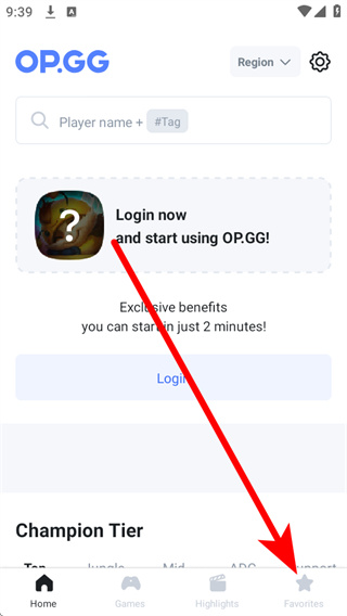 1、打開OPGG,點擊底部導航欄的Favorites選項,進入收藏頁面。