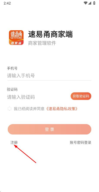 1、在登錄頁面點擊注冊選項,進入注冊賬號頁面。