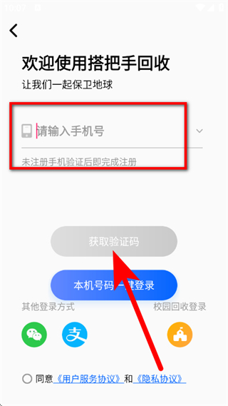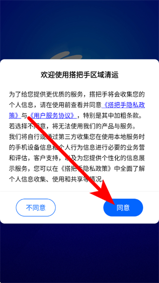 1、打開搭把手回收,點擊彈窗里的同意,進入首頁。