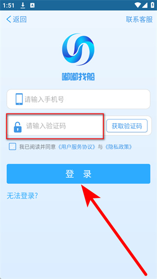 4、將收到的驗證碼填入驗證碼輸入框,勾選相關協議,點擊登錄完成賬號登錄。