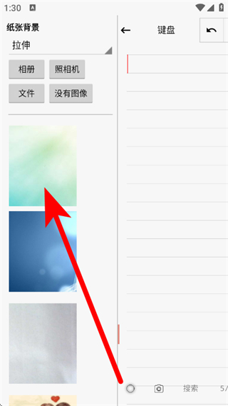 4、在紙張背景頁面,點擊選擇喜歡的背景樣式,完成當前筆記的紙張背景設置。