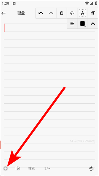 2、在新建筆記的編輯頁面,點擊左下角的功能按鈕,打開功能操作菜單。