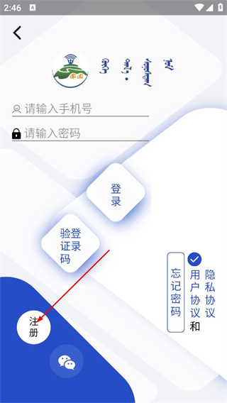 1、在登錄頁面,點擊注冊的選項,即可進入賬號注冊頁面。