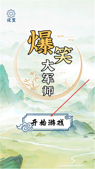 1、進入爆笑大軍師的啟動界面,可點擊左上角設置調整,點擊界面中的開始游戲按鈕即可進入游戲選擇界面。
