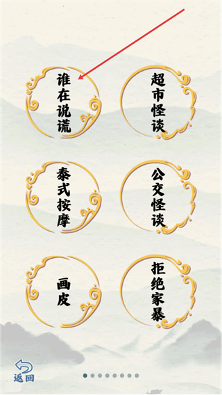 2、進入關卡選擇界面,可看到誰在說謊、超市怪談等關卡選項,選擇對應關卡即可進入,也可點擊返回回到啟動界面。