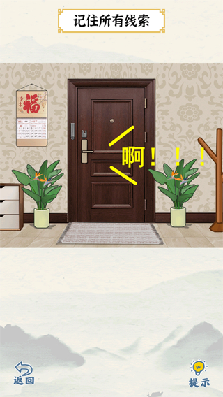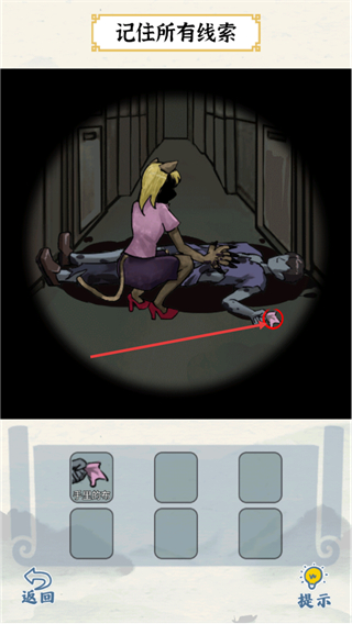 4、進入關卡后看到記住所有線索的提示,需留意場景中的線索如手里的布,收集線索以推進關卡進度。