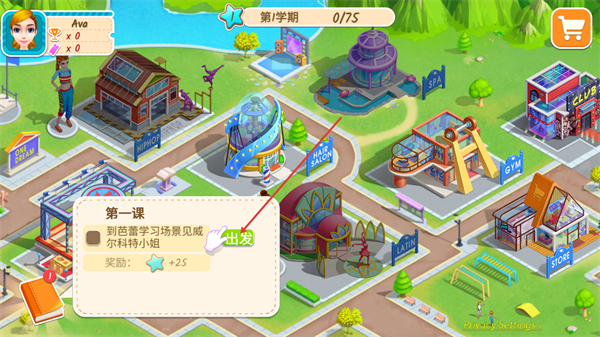 1、在游戲界面查看第一學習場景已到芭蕾舞學習場景哦爾科特小姐的提示,點擊出發按鈕進入芭蕾舞學習場景。