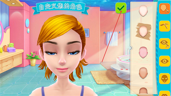 1、進入游戲后在自定義您的角色界面里,選擇右側形象元素調整角色外觀,完成后點擊右上角的對勾按鈕確認設置。