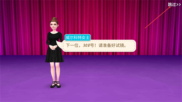 2、此界面中可查看威爾科特女士的試鏡通知,若想快速推進,點擊右上角的跳過按鈕即可進入后續環節。